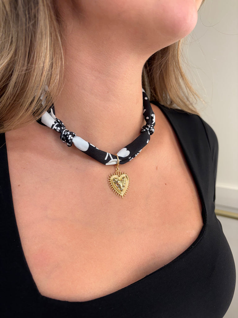 Cheyanne Scarf Necklace {Black + Heart Charm}