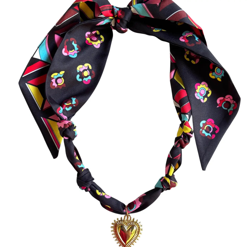 Flower Child Scarf Necklace {Boogie Black + Heart Charm}