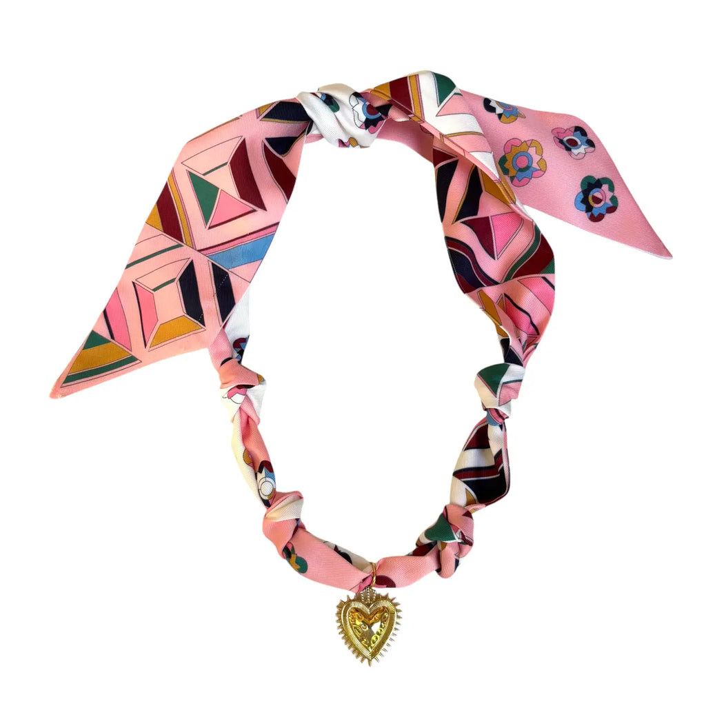 Flower Child Scarf Necklace {Retro Pink + Heart Charm}