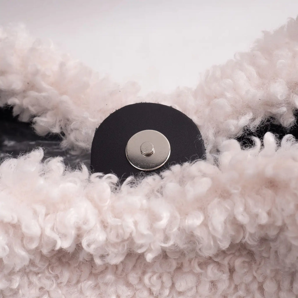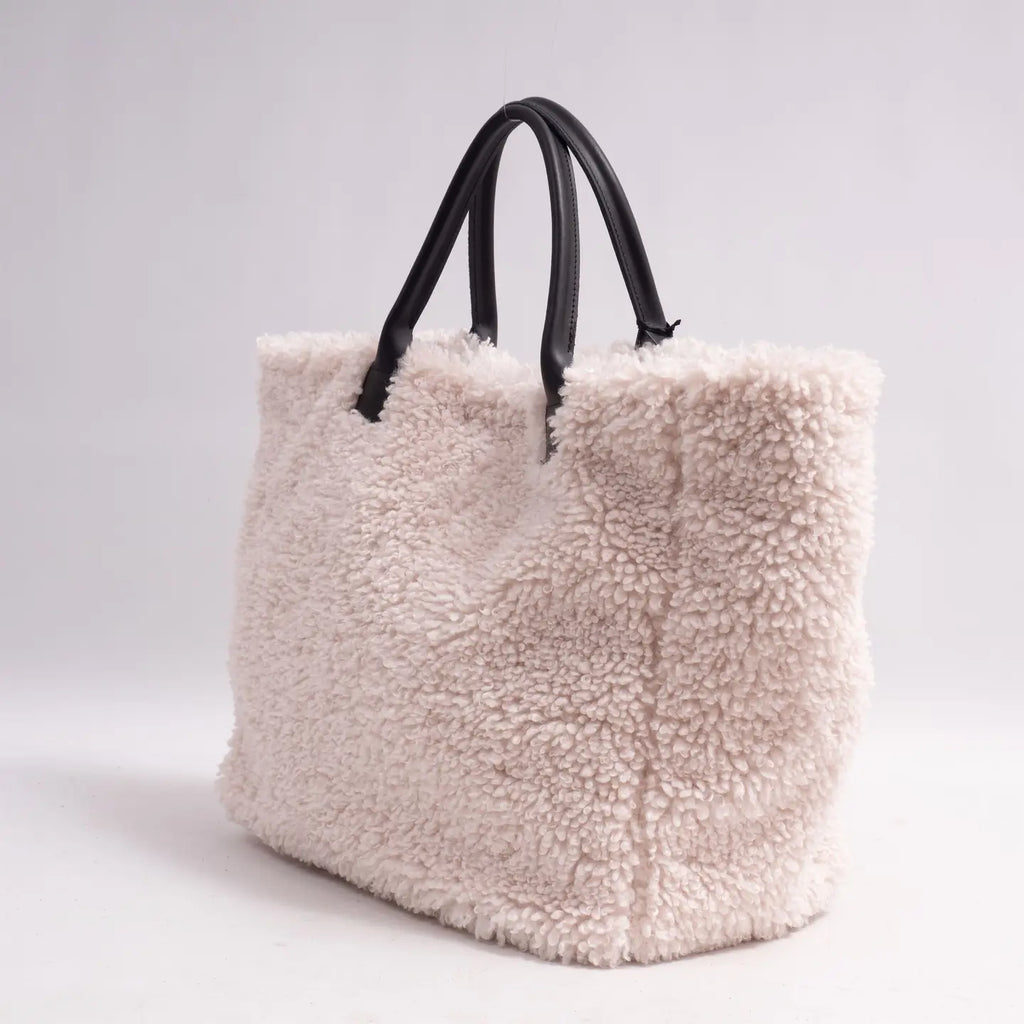 Leather Handle Faux Fur Bag {Off White}