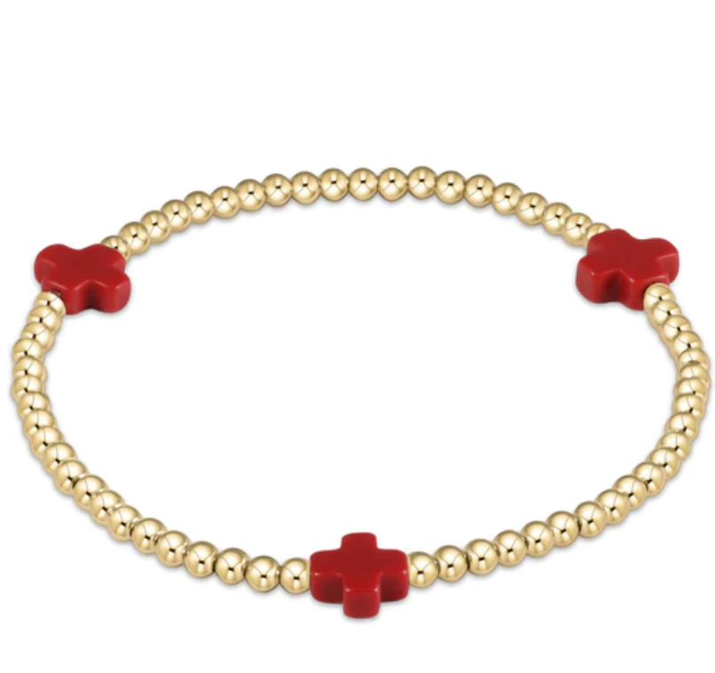 enewton | Signature Cross Gold Pattern Bead Bracelet - Red - 3mm