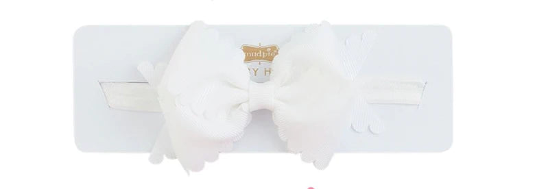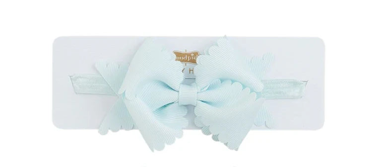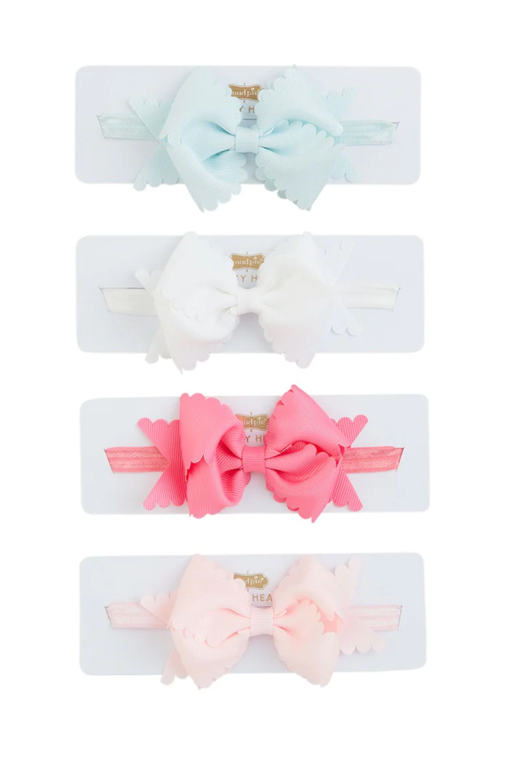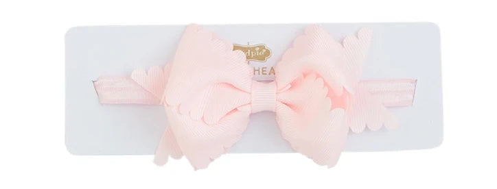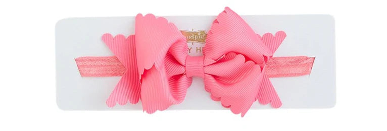 Accessorize in style with our luxurious Scallop Bow Headband. Featuring a beautifully crafted scalloped grosgrain bow, this elastic headband adds a touch of elegance to any outfit. Keep your little one effortlessly chic and comfortable with this must-have accessory.
