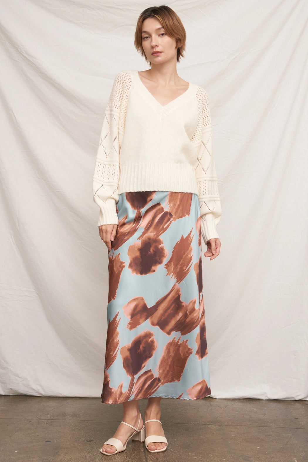 Abstract Satin Maxi Skirt {Blue + Brown}