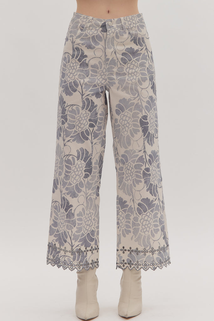 Floral Scalloped Eyelet Hem Pants {Ecru}