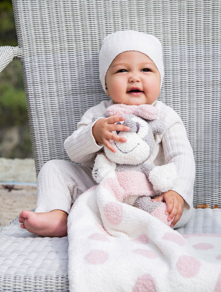 This adorable Minnie Mouse is the sweetest companion for your growing little one! With its cozy little blanket and vintage soft colors, it'll be their favorite buddie for years to come. Buddie and blanket are designed from our iconic feather-knit Cozychic fabrication. Blanket is 16" x 16", Buddie is 11.5". Imported.