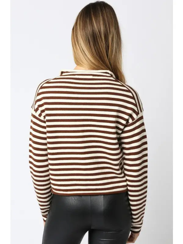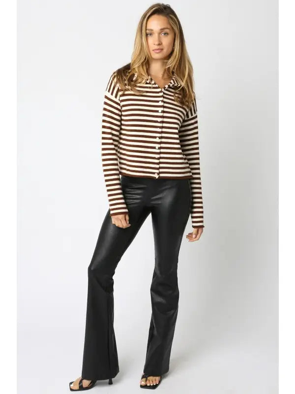 Stripe Knit Top features a button down and a long sleeve. Knit
