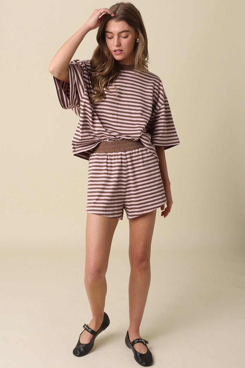 These Striped Elastic-Waist Shorts feature a soft elastic waistband for a comfortable, pull-on fit and a horizontal stripe pattern with a relaxed, easy silhouette.