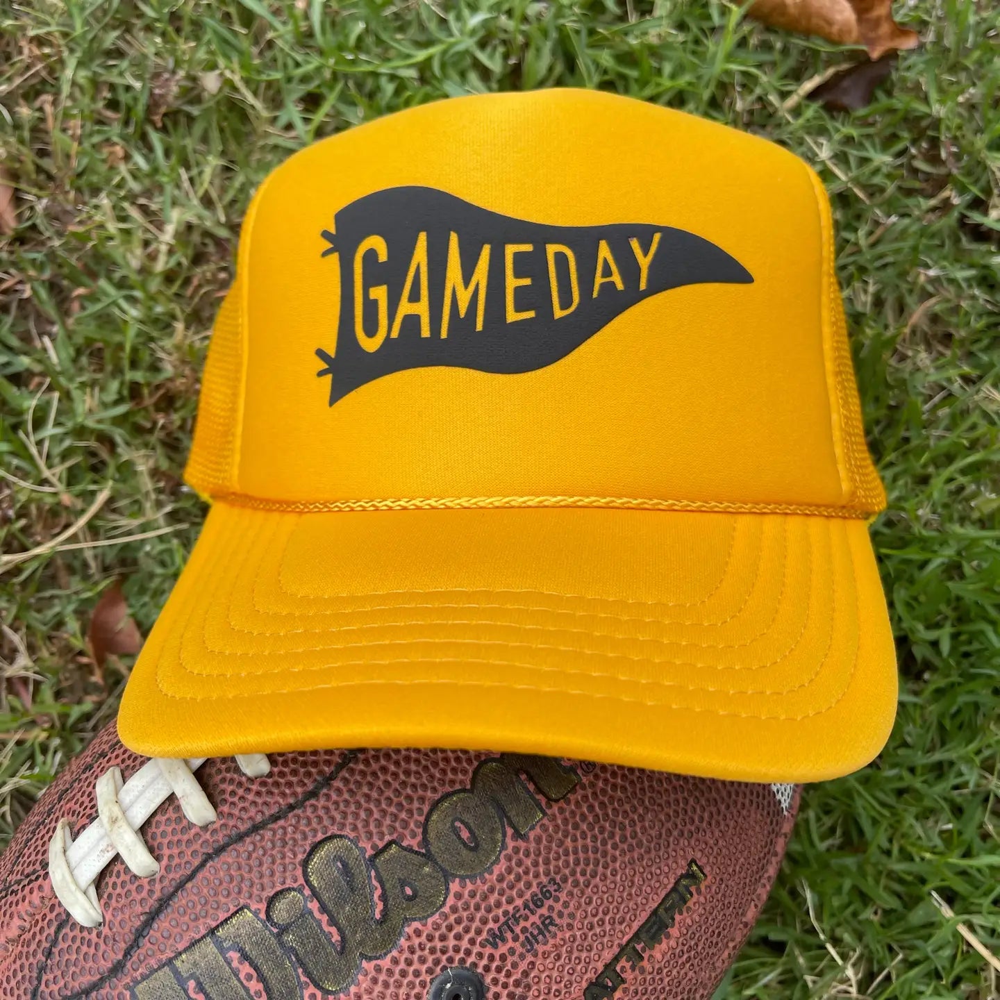 Introducing the perfect accessory for your gameday look- the Gameday Flag Trucker Hat! For the football cheerleaders, football moms, football fans and football princesses out there, this hat is sure to make you the life of the game! Show your spirit and stand out in the crowd! Go on, get your game hat on! Touchdown