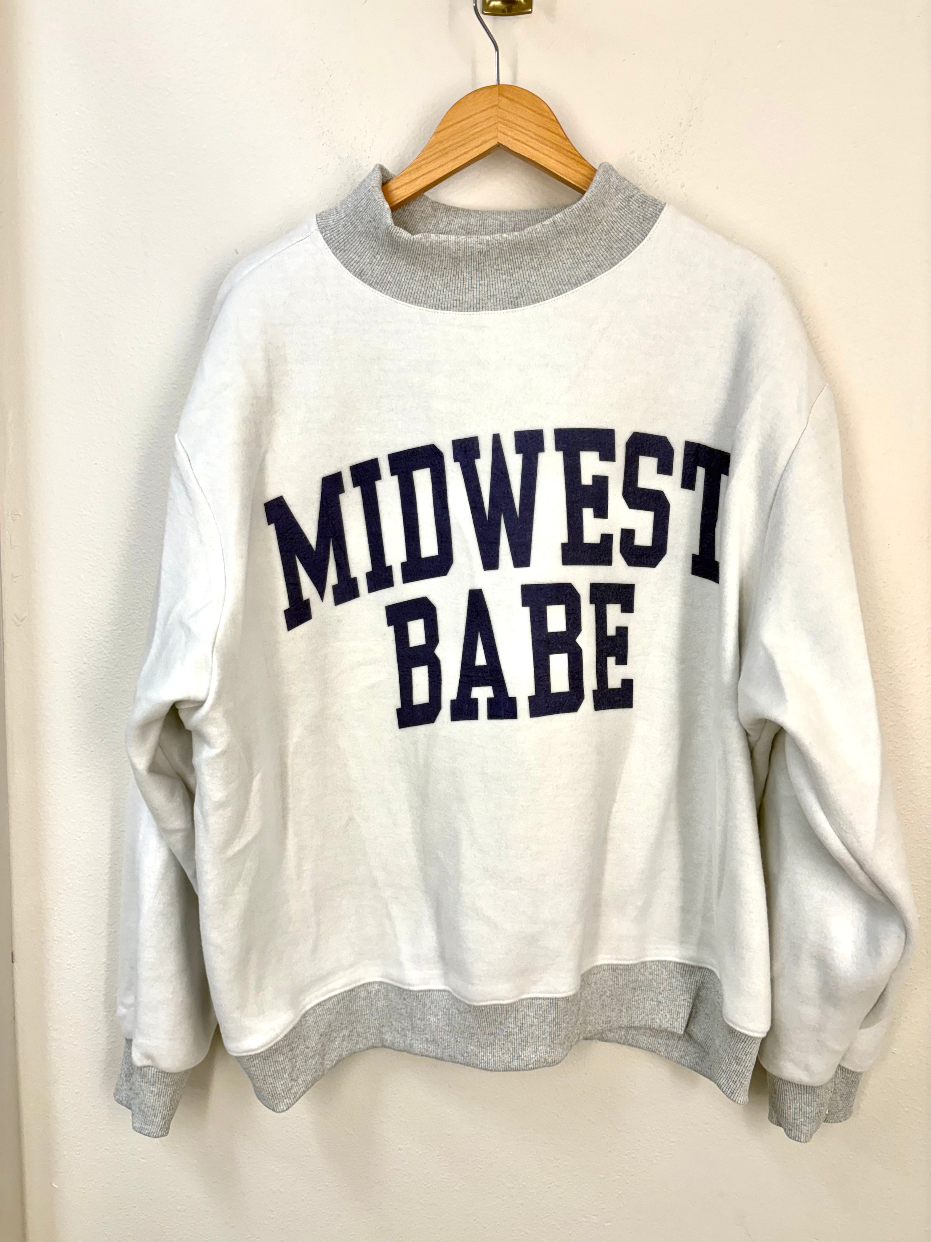 'MIDWEST & MIDWEST BABE' Reversible Mockneck Sweatshirt - Mock-neck - Drop shoulder, long sleeves - Softest cozy fleece - Oversized fit - Rib banded hemline and cuffs - The reversible design lets you switch up your style.