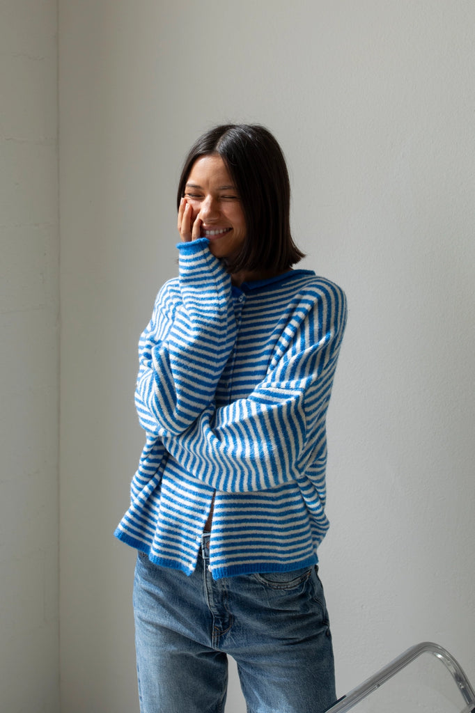 Mini Striped Cardigan {Blue}