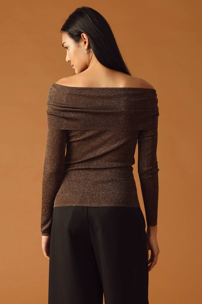 An off shoulder knit sweater top with long sleeve Details: Self : 73% Viscose, 18% Nylon, 9% Polyester Size & Fit - Model is 5`8" And Wearing Size Small - Measurements Taken From Size Small - Approx. Length: 24"