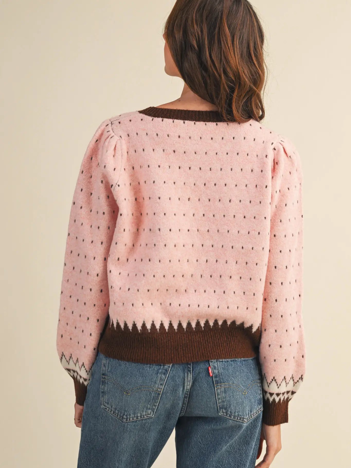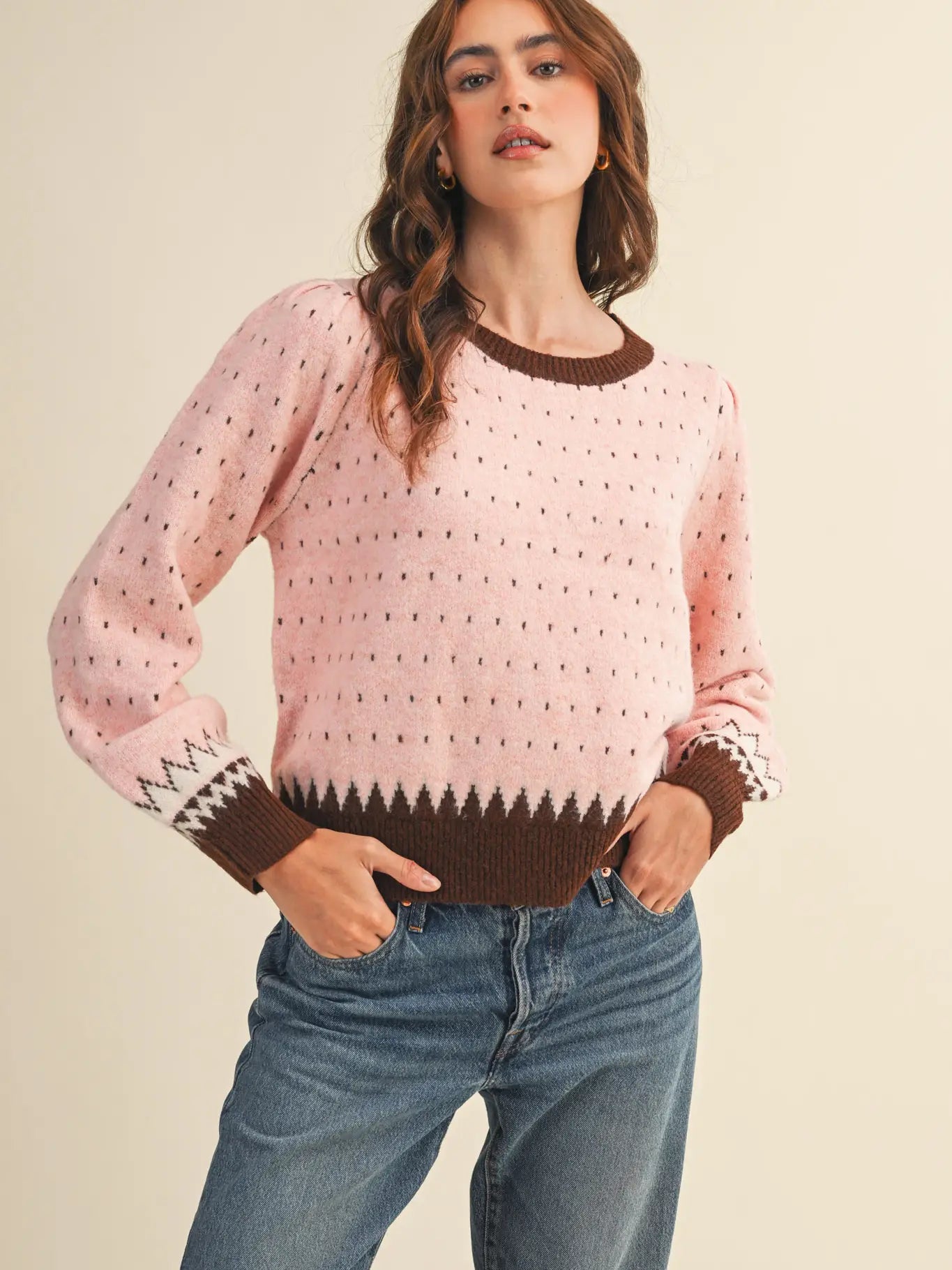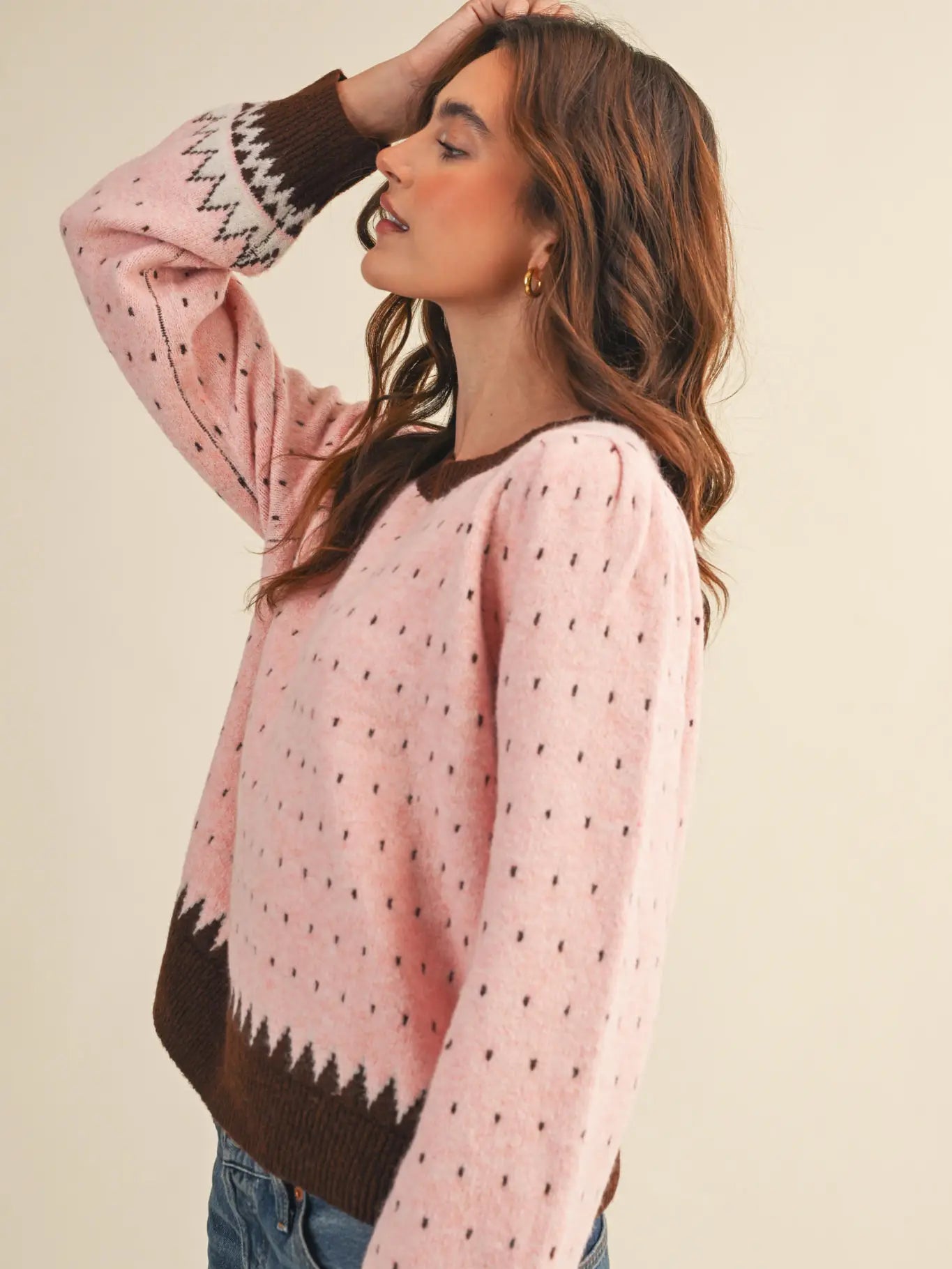 Puff Shoulder Geometric Sweater {Rose Brown}