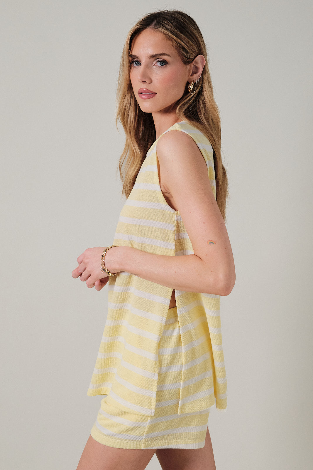 Striped Tunic & Short Set {Butter White}