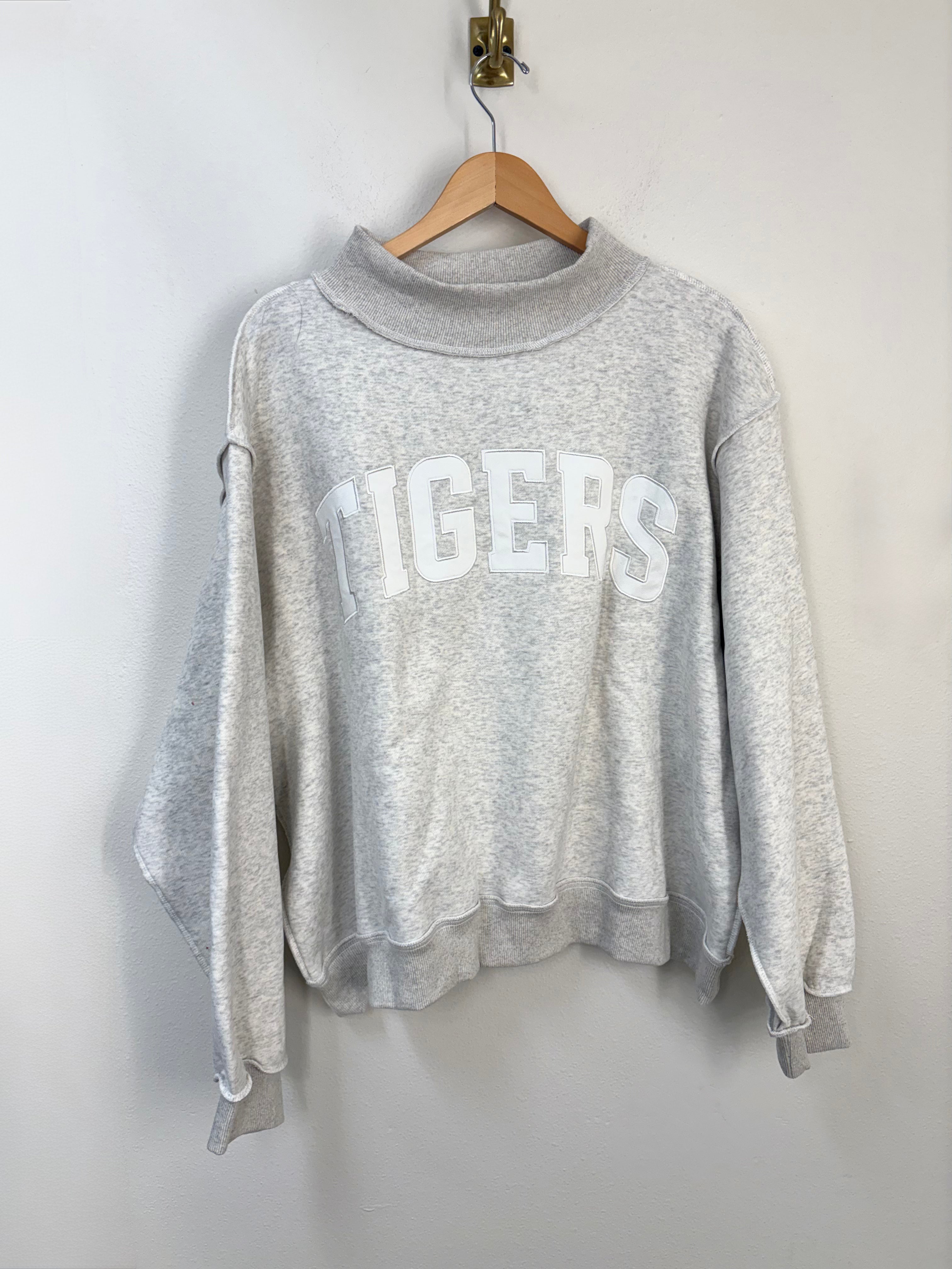 Mock neck oversized sweatshirt with 'TIGERS' embroidered on front