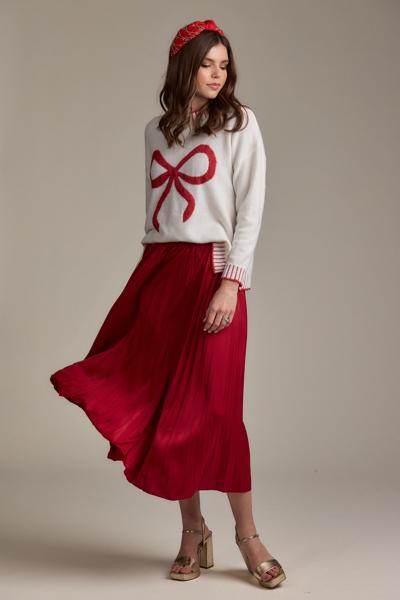 The Wilder Bow Sweater is crafted from a luxurious heathered wool blend, offering both style and comfort. This sweater showcases a distinctive jacquard icon, adding a touch of elegance to your wardrobe. The contrast stitching at the ribbed neckline, sleeve openings, and hem provides a refined finish, enhancing its overall appeal. With a length of approximately 24 1/2" from shoulder to hem on a size small, it offers a flattering fit for various body types. Available in three sizes (S, M, L), this sweater is made from a high-quality blend of 85% Polyester, 6% Acrylic, 5% Wool, and 4% Spandex, ensuring durability and a comfortable stretch. Perfect for layering or wearing on its own, the Wilder Bow Sweater is a versatile addition to any fashion-forward wardrobe.