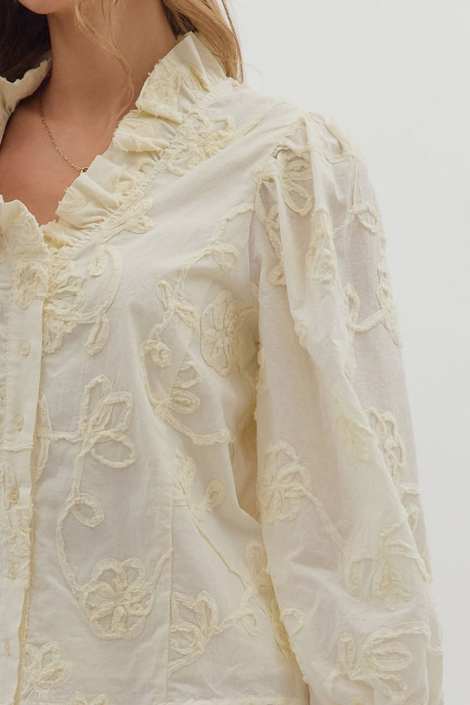 Applique Long Puff Sleeved Top {Cream}