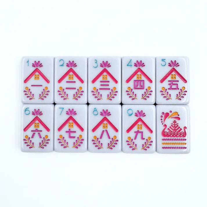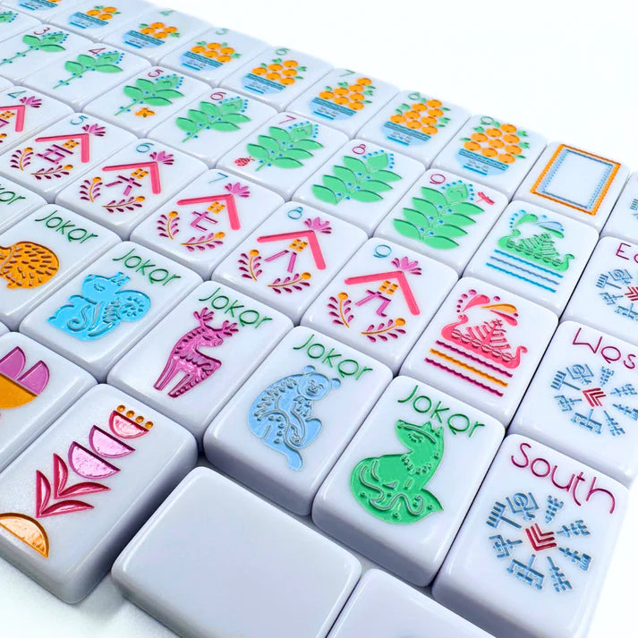 The SCANDINAVIAN FOLK ART Series, Mahjong with Nordic Style. With beautiful symmetry and simplicity we love about Nordic style mixed with the Scandinavian folk art cuteness of our animal Jokers with amazing Viking symbols like the Viking compass winds (“vegvisir”) and the Viking ship Dragons!